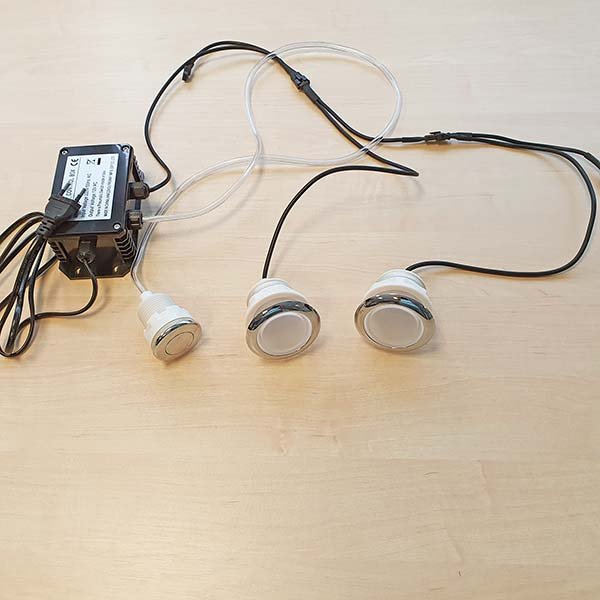 ⚠️ Important : aucune installation n'est réalisée sans spécification préalable du client. Lors de votre commande, indiquez impérativement au responsable Happybois que vous souhaitez le kit 2 lampes LED. Une installation après livraison n'est pas possible — le système est intégré à la structure du bassin en usine.