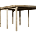 Le carport en bois de Weka est fabriqué en pin massif de haute qualité se fondant parfaitement dans un environnement paysager sans le dénaturer. 8 poteaux en bois de section 12 x 12 cm viendront stabiliser le garage ouvert. Le charme authentique et chaleureux du bois en fera un abri pour voiture qui ne pourra que mettre en valeur un extérieur tout en apportant une réelle plus-value au jardin avec un stationnement pour véhicule abrité.