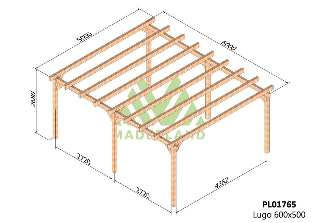Maderland est une marque de renom espagnole spécialisée dans la fabrication de produits d’aménagement extérieur en bois de qualité. Avec un excellent rapport qualité prix, le groupe Maderland est rapidement devenu une référence sur le marché de la pergola en bois adossée ou autoportante, tonnelle de jardin, abri pour voiture de type Carport… Engagée dans la protection environnementale, Maderland a mis en place une politique de gestion environnementale stricte avec notamment son mode de fabrication ainsi que la provenance des matières premières. Le bois utilisé pour la fabrication des constructions de jardin en bois lamellé-collé ou massif (pergola en kit, tonnelle, abri de voiture) provient du Nord de l'Europe. Le bois massif des pergolas en kit a reçu un traitement par autoclavage ne contenant ni chrome, ni arsenic. Le gros atout des pergolas en bois adossées ou autoportées de Maderland ? Leur simplicité de montage en fait une construction de jardin s’installant en seulement quelques heures.