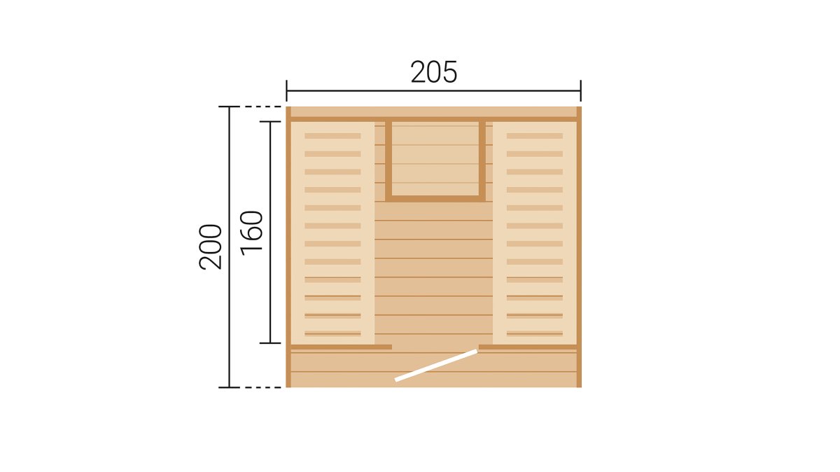 L'espace intérieur du LAADI 2 est une invitation au lâcher-prise. Ses dimensions intérieures généreuses de 190 × 160 × 190 cm et son volume de près de 6 m³ assurent une circulation de l'air optimale et une montée en température parfaitement homogène.